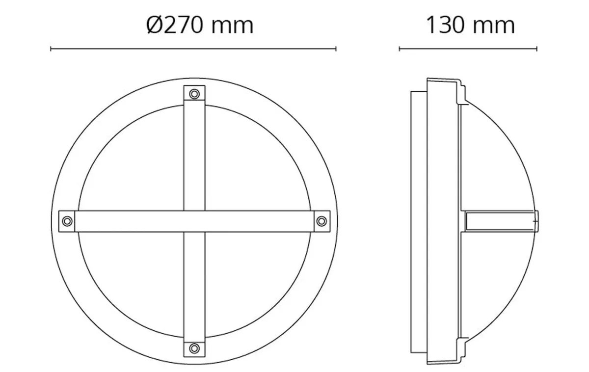 Flott veggarmatur med kryss som kan monteres både ute og inne. Finnes i varianter med integrert skumringsrelé. Utført i trykkstøpt, pulverlakkert aluminium, og skjerm i UV-stabilisert opalisert polykarbonat. Enkel montering med hurtigklemmer. To kabelinnganger, mulighet for både synlig og skjult kabling. Korrosjonsbeskyttet med 10 års garanti. Vandalsikker IP65/IK10.