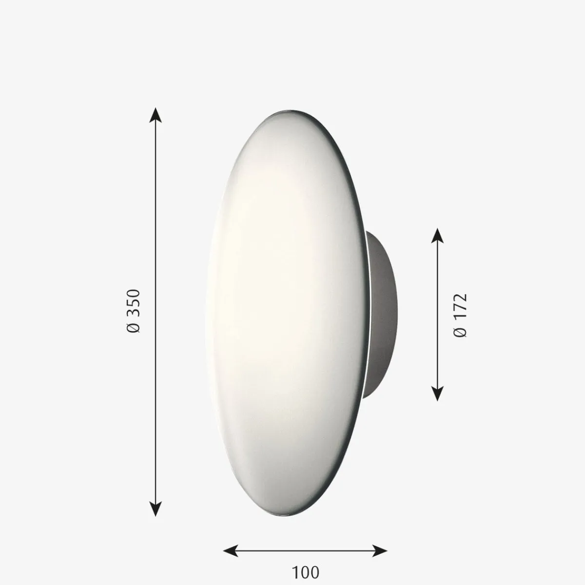 Lampen sender ut et mykt og komfortabelt lys. Glasset er laget for å gi en jevnt opplyst overflate. Den munnblåste opale glass skjermen med tre lag har en gjennomsiktig kant som gir en dekorativ lysglorie rundt armaturen.
