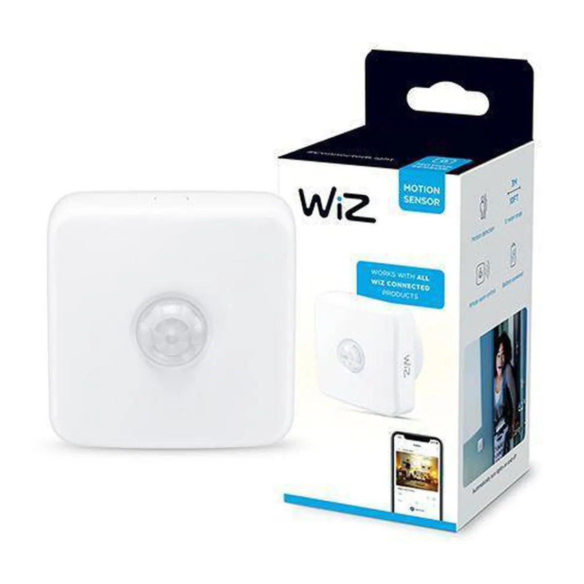 Still inn lysene til å slå på/av eller endre lysstyrke og farge når de registrerer bevegelse. Denne sensoren kobles direkte til WiZ-lysene dine og fungerer selv når Wi-Fi er nede.