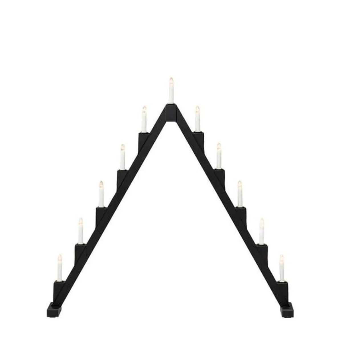 Klassisk adventslysestake i lakkert tre med elegante messingfargede metalllyshylser – en tidløs favoritt som sprer atmosfære i vintermørket. Med 11 varme hvite lys og et smart sammenleggbart design er den både vakker i vinduet og enkel å oppbevare til neste jul.