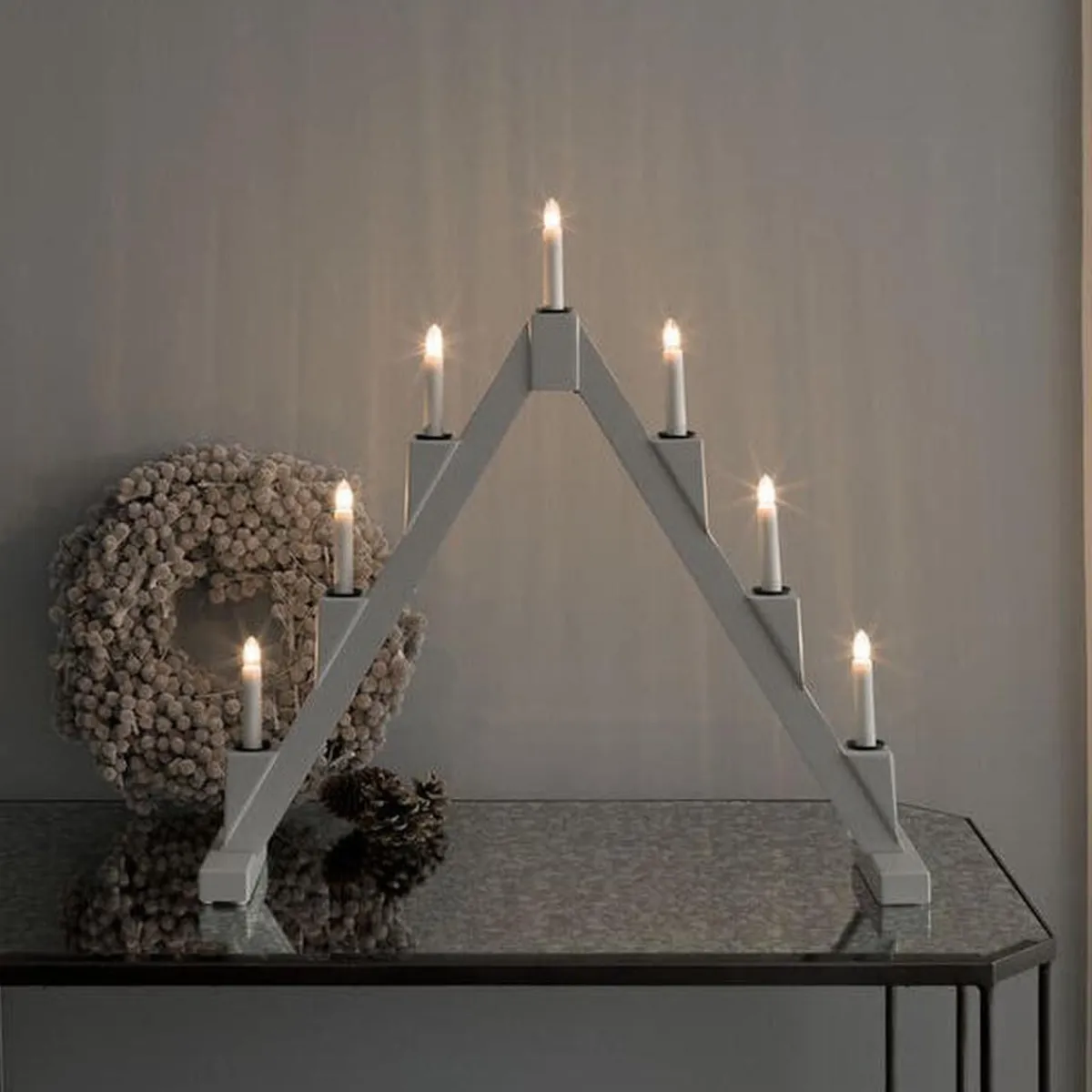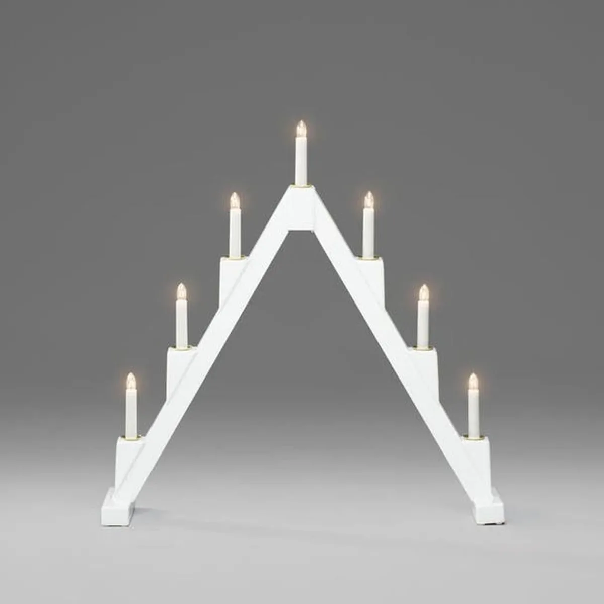 Klassisk adventslysestake i lakkert tre med elegante messingfargede metalllyshylser – en tidløs favoritt som sprer atmosfære i vintermørket. Med 7 varme hvite lys og et smart sammenleggbart design er den både vakker i vinduet og enkel å oppbevare til neste jul.