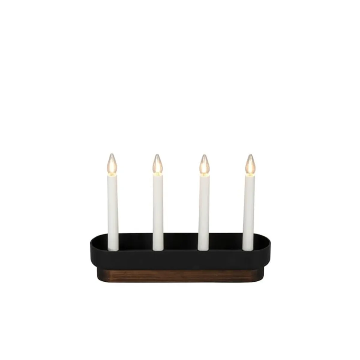 Adventstake 4 armet i plast – lakkert valnøtt. Ledning med bryter.
