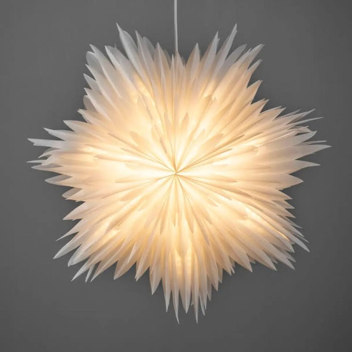 Imponerende adventsstjerne i gyllent papir med elegant perlemoreffekt. Med praktisk snorhenger og hvit snor med bryter – en tidløs klassiker som skaper en varm, koselig og hjemmekoselig julestemning.
