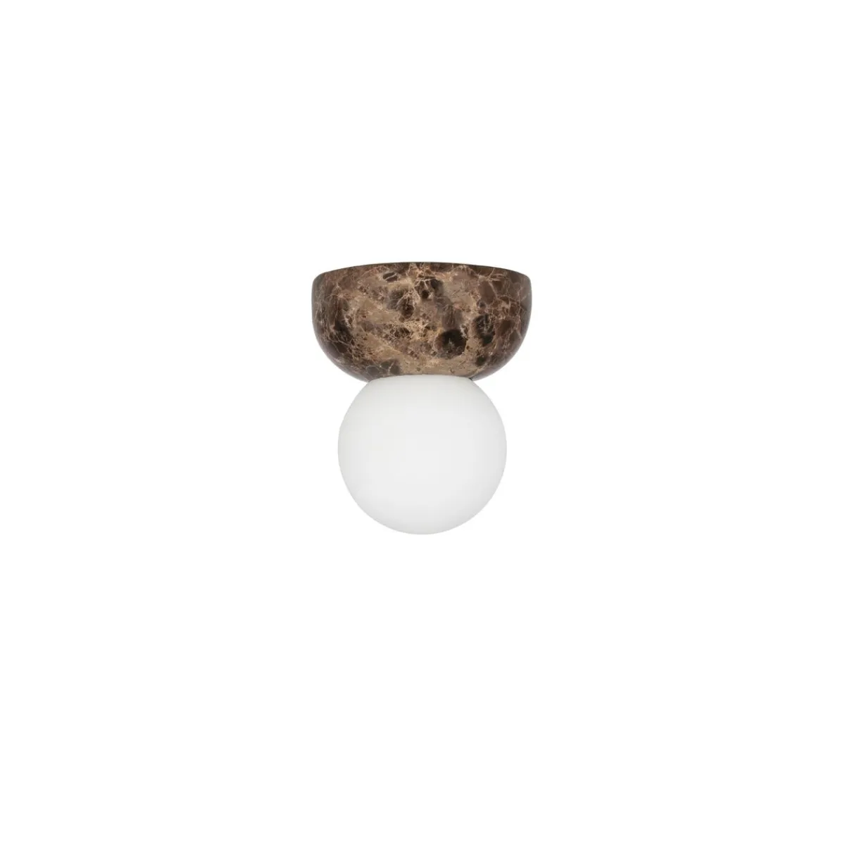 Torrano i solid marmor blir en vakker detalj i rommet. Denne lampen består av brun marmor og en glasskopp i matt hvitt glass som skrus fast.