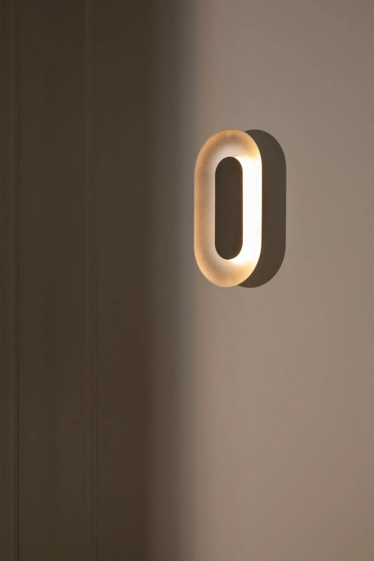 Dekorativ vegglampe med et mykt uttrykk og et behagelig, indirekte lys. Sasi Large vegglampe er konstruert med en stor rund metallramme i sateng messing finish og en lampeskjerm i polert messing finish. En integrert LED-modul er plassert bak den polerte skjermen og reflekterer lyset i den store metallrammen. Sasi Large vegglampe kan fungere både som et dekorativt element og som ambient belysning i stuen.