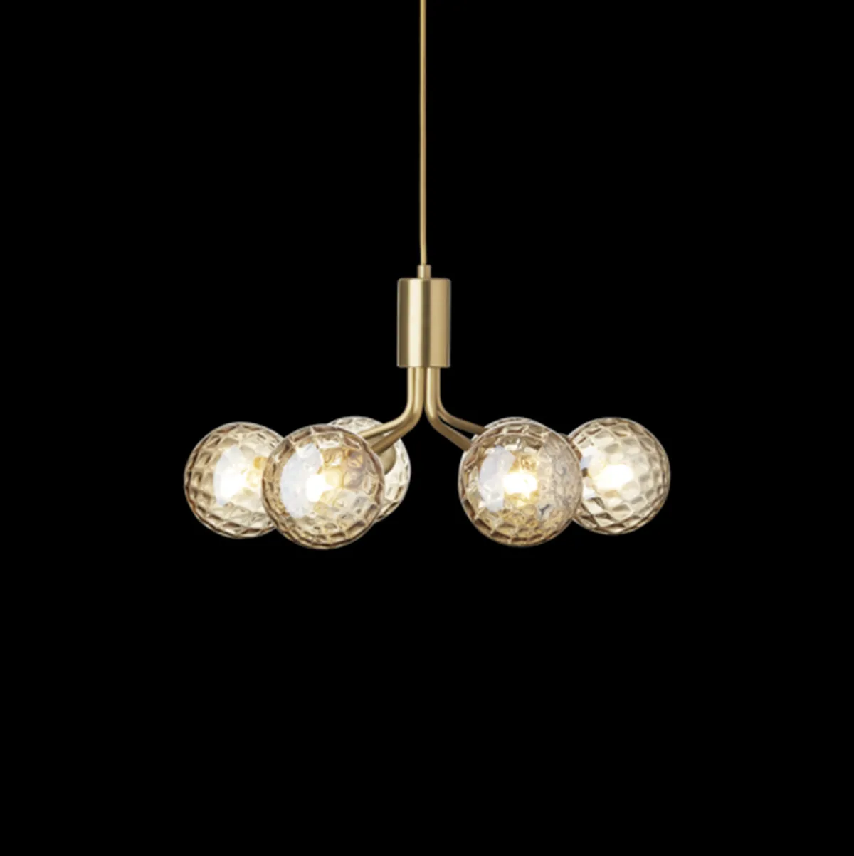 Med inspirasjon fra blomster, bretter Apiales 6 ut de børstede messingmetallstilkene til opalhvite glasskuler, og tilbyr et mykt og behagelig uttrykk til rom med begrenset plass.
