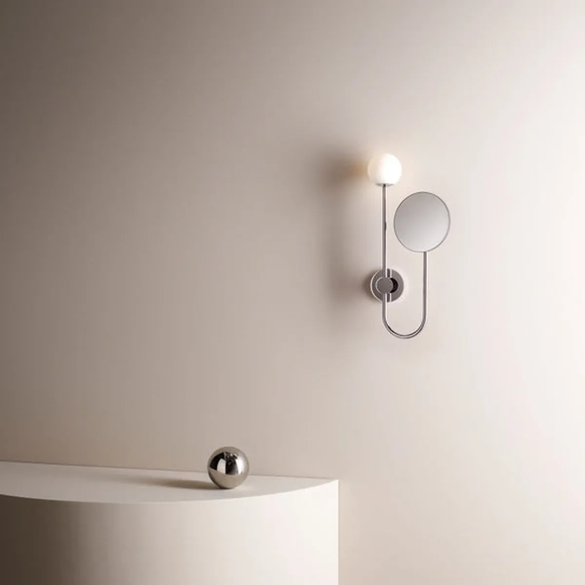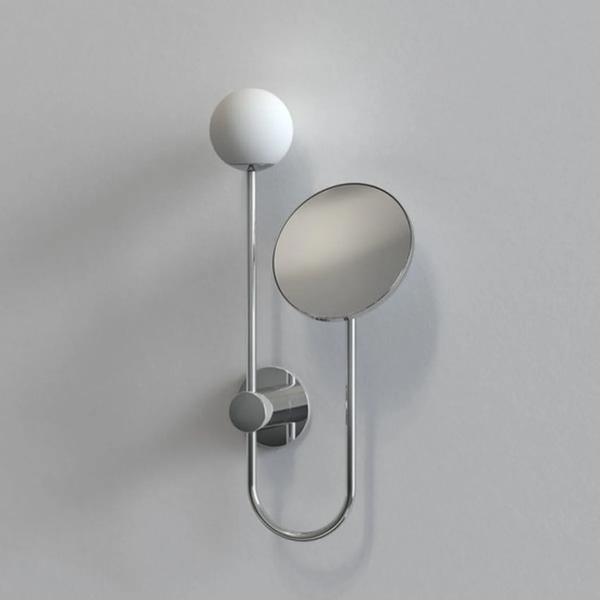 Orb er en stilren vegglampe med speil som kan benyttes på baderommet. Speilet er justerbart og har 5x zoom