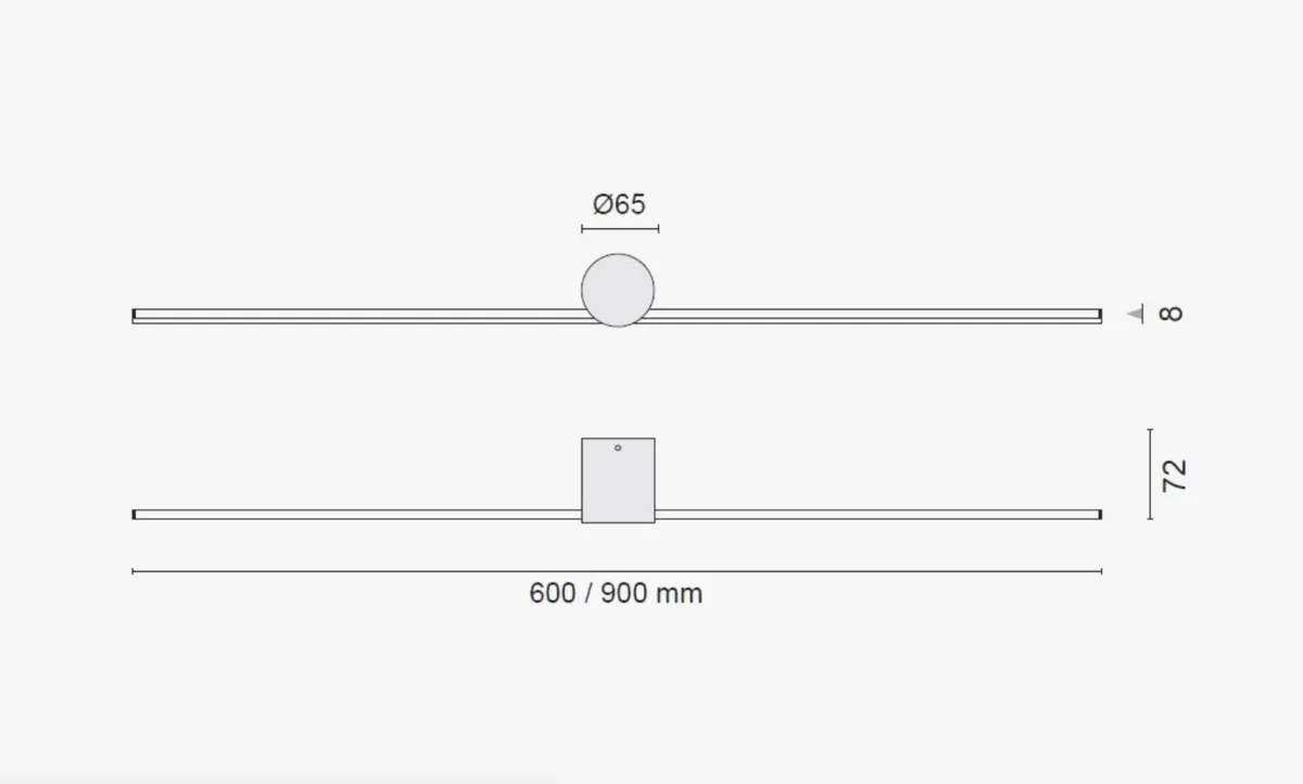 Den andre modellen retter lyset mot veggen og skaper et indirekte lys. Kommer i lengden 60cm og i fargen sort.