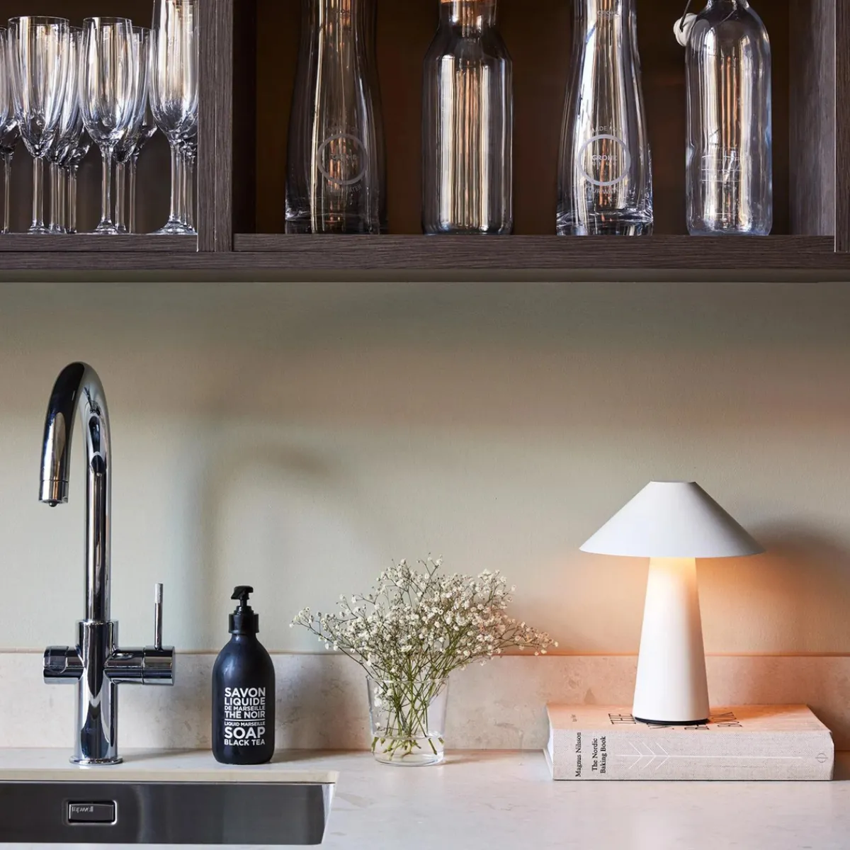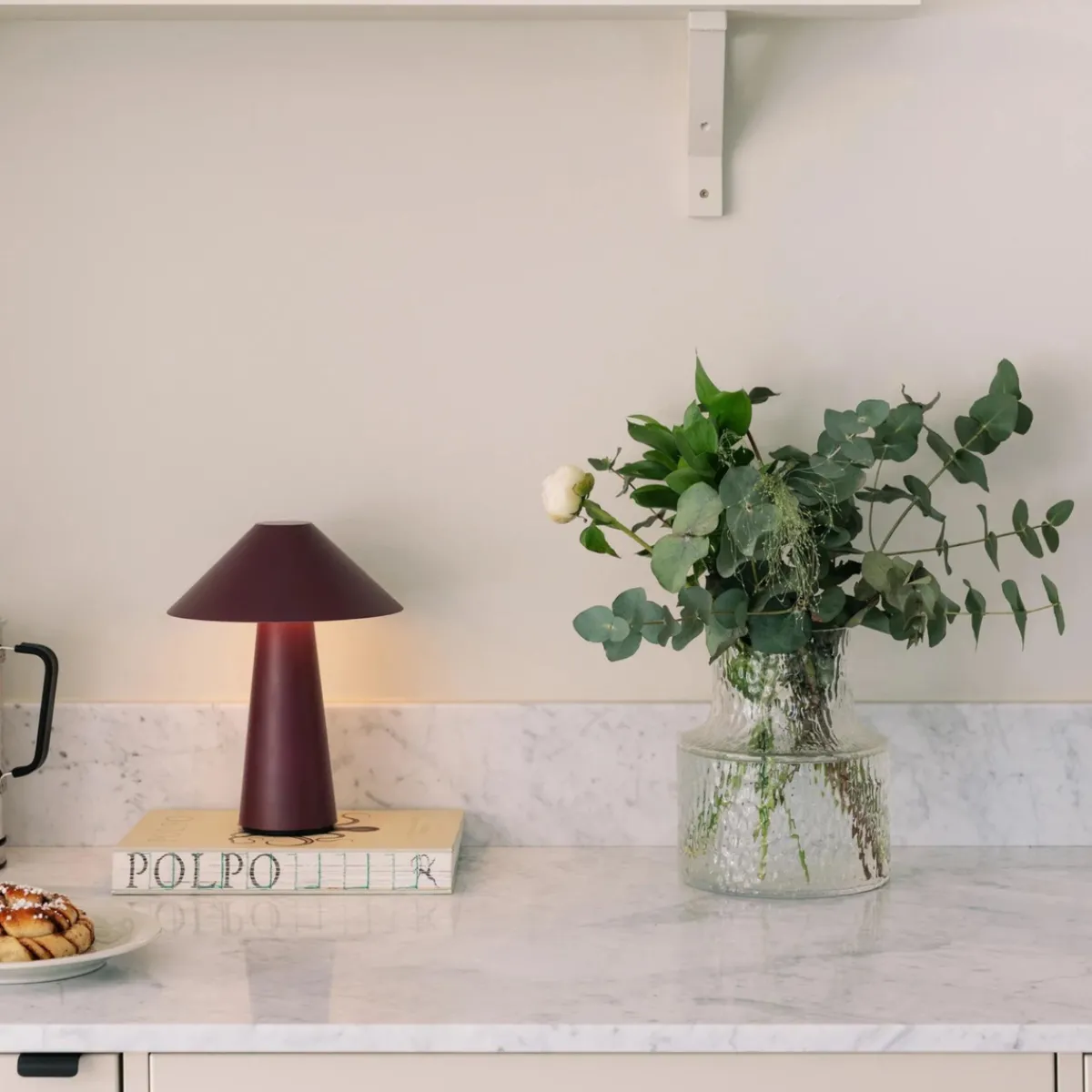 Takket være den praktiske størrelsen og det faktum at den er trådløs, gjør Cannes bærbare bordlampe det enkelt for deg å ta den med deg dit du vil.