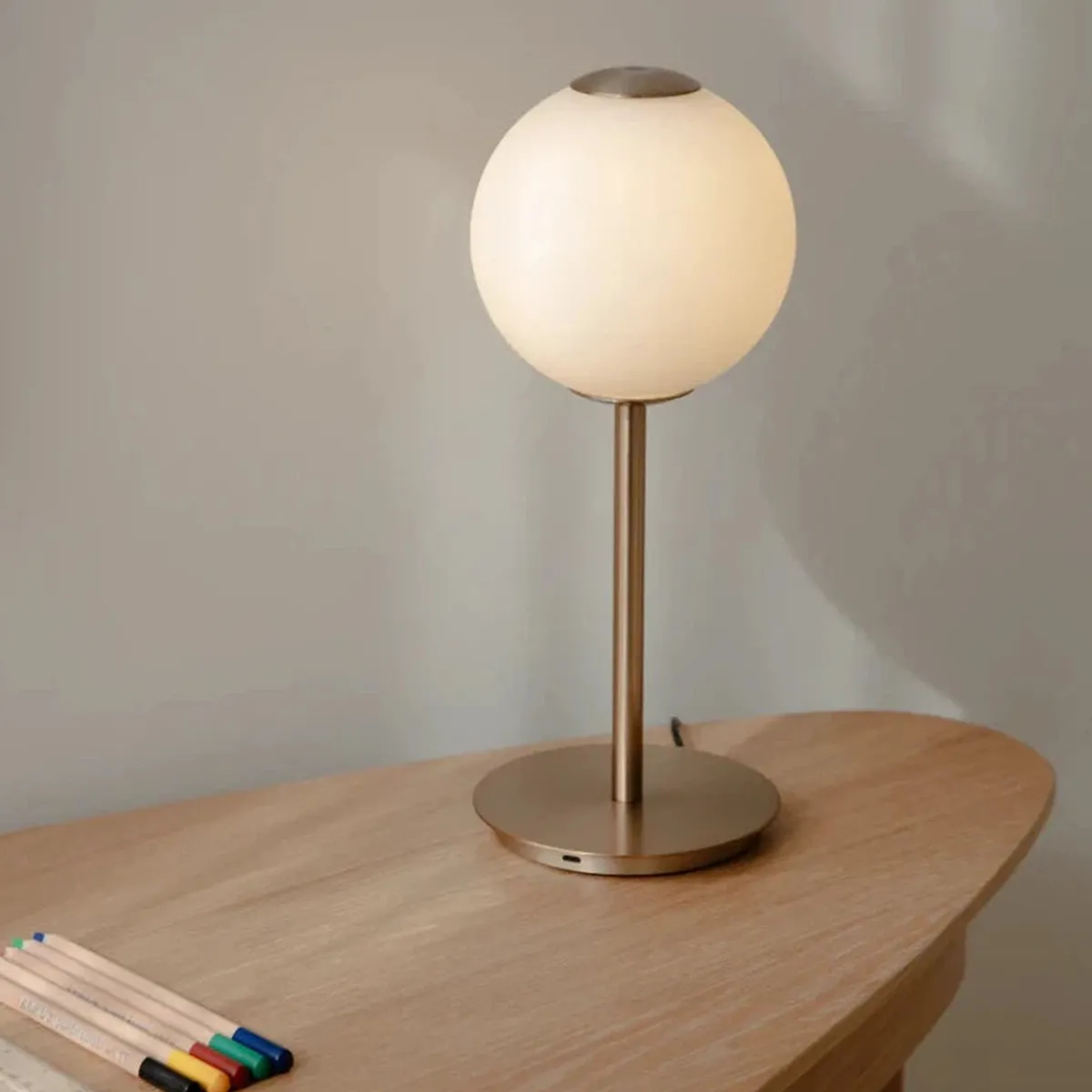 Audrey-bord kan dimmes med en diskret knapp øverst på lampen, slik at du kan justere lyset og skape ulike stemninger – fra et praktisk lys på skrivebordet til et mykt lys på nattbordet. Lampen har en integrert USB-C-inngang, slik at du enkelt kan lade telefonen, nettbrettet eller andre enheter.