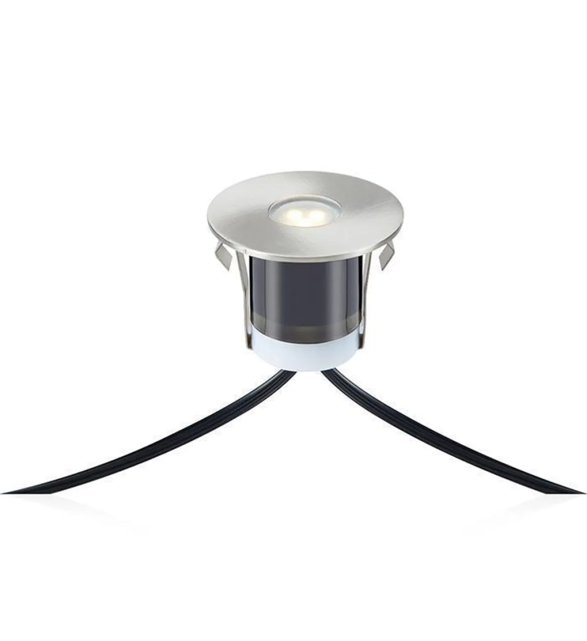 Garden 24 uplights fra Markslöjd. Tre uplights av stål for eksempel innebygde traller. Godkjent for utendørs bruk. IP44. Diameter 5cm. Fast LED på 0,8 W i hver uplight. Transformator selges separat.