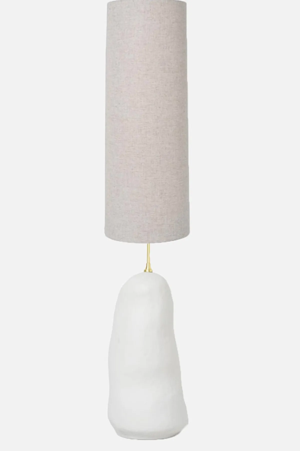 Hebe Gulvlampe i Offwhite/Natur er en dekorativ gulvlampe fra det danske merket Ferm Living. Lampefoten er formet for hånd i keramikk, som er kombinert med den klassiske lampeskjermen i tekstil. Lampens organiske form gir hjemmet et kunstnerisk preg. Lampeskjermen har lokk så du ikke blir blendet av lyspæren.