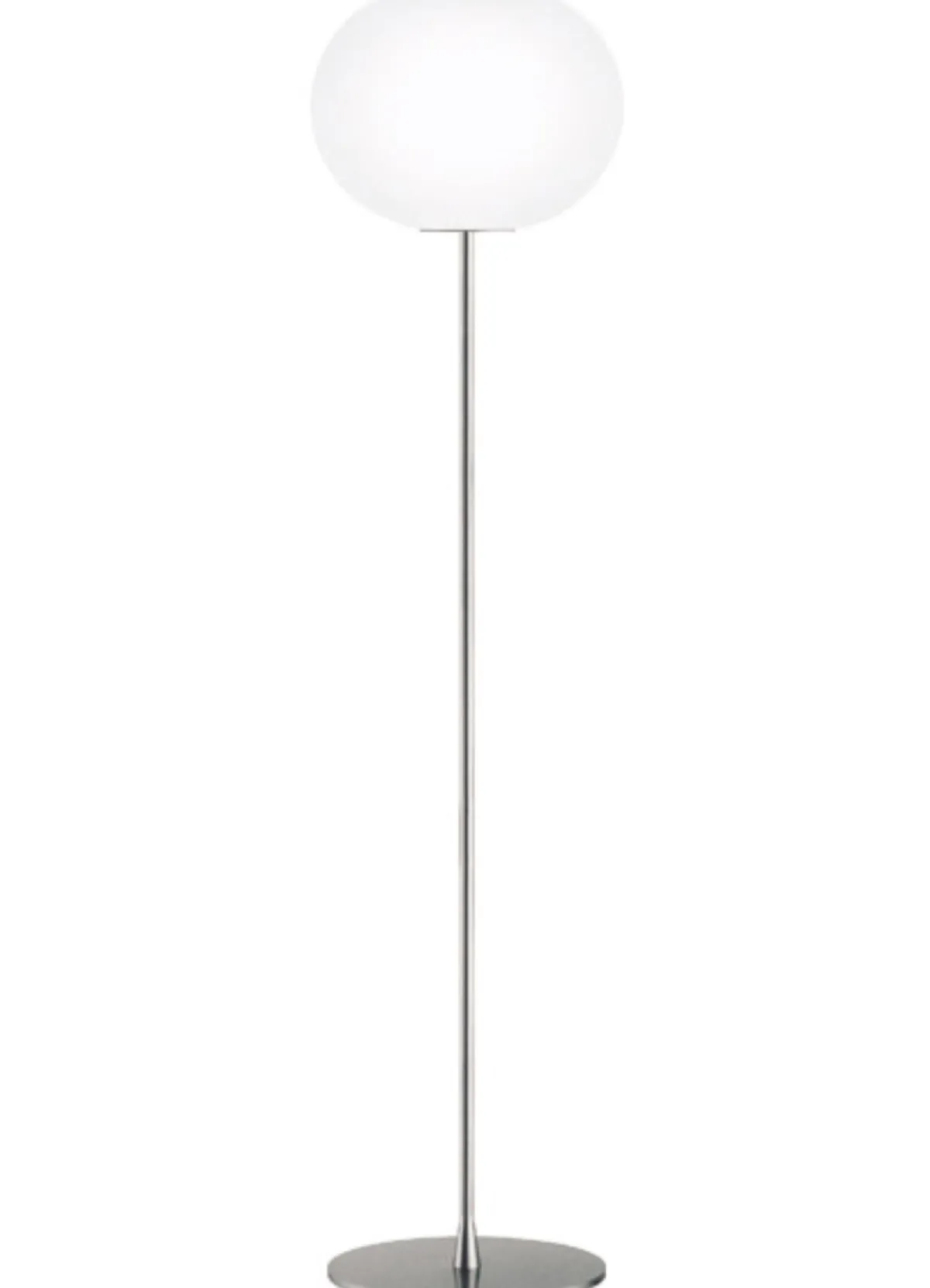 Glo-Ball F3 er en enkel men genial gulvlampe. Den enkle formen kombinert med godt lys gjør denne lampen til en meget anvendelig lampe som passer i de fleste rom, til og med på bad. Den er laget av ett stykke hvitt, munnblåst glass og minner mest om en måne med jevn, generell belysning. Stamme i børstet stål. Glo-Ball er en del av en stor serie bordlamper, gulvlamper, vegg- og taklamper. Designet av Jasper Morrison i 1998