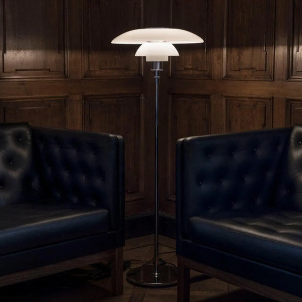Armaturen er designet etter et prinsipp basert på et reflekterende tre-skjermssystem som styrer det meste av lyset nedover. Skjermene er laget av munnblåst tre-lags opalt glass som er blankt på toppen og matt på undersiden. Dette gir et mykt og diffust lys.