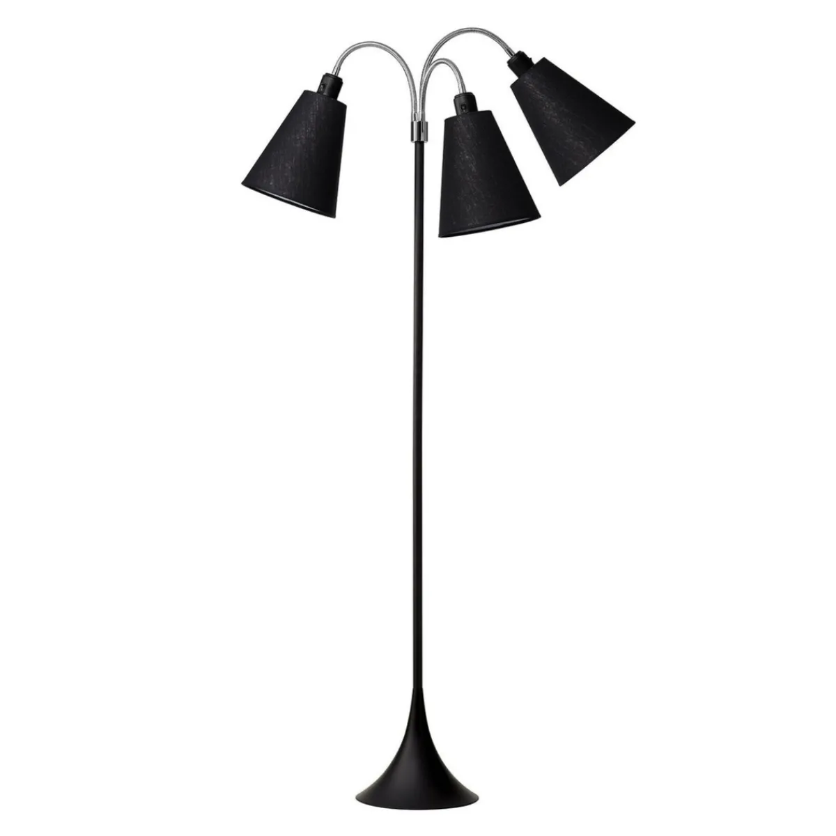 Klassisk gulvlampe med 3 skjermer og er fleksibel slik at du kan justere lampehodene.