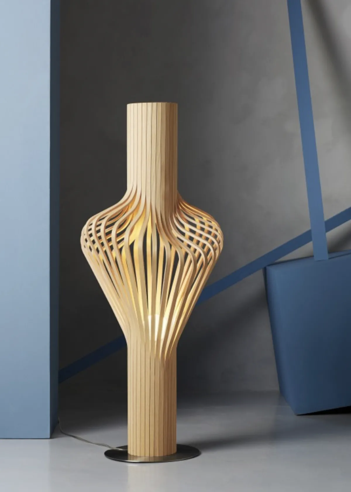 Diva er en lampe designet for å ta sentrum, og som får sin tilstedeværelse til å føles. Divas særegne, spiralformede kurver bidrar til å spre lyset delikat ut i rommet. Gulvlampen kommer i eik og valnøtt. De to tresortene er nøye utvalgt etter deres evne til å kunne skape kurvede og skulpturelle former som forblir holdbare og sterke. Lampen har en frostet munnblåst glass diffuser inne i kroppen som myker opp lyset. Gulvlampen har en fot i polert stål og dimmer på ledningen slik at lyset til en hver tid kan dimmes. Lampen er like vakker fra alle vinkler og skaper en WOW-effekt i ethvert rom.