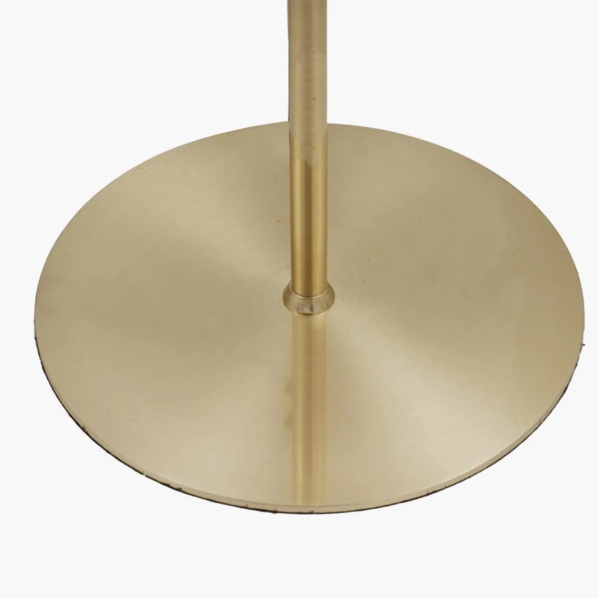 Gulvlampe i børstet messing med kupler i matt opalt glass. Bordlampe finnes i samme serien.