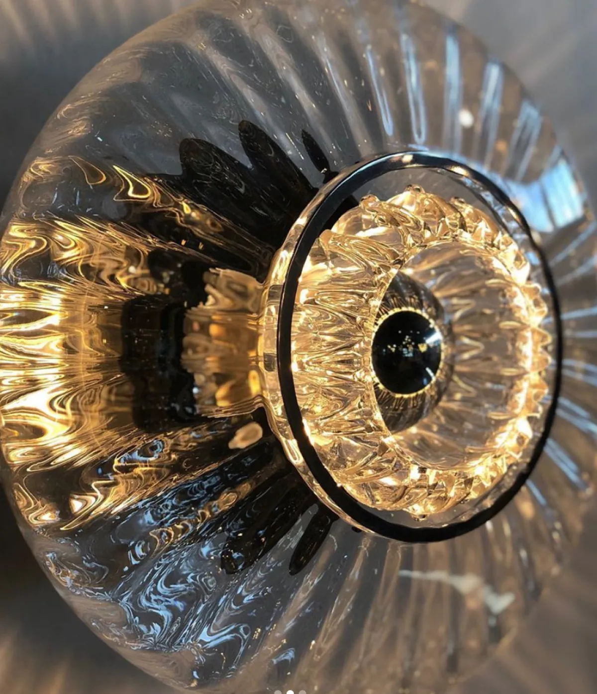 New Wave vegglampen er en ikonisk juvel for hjemmet ditt. Det optiske glasset kaster et vakkert bølget lys til veggen, som ingen andre dekorlys. Lampen kan monteres på både vegg og tak. New wave lampen er ett godt eksempel på hvordan en lampe kan skape ett helt rom. Alle lampene i New Wave serien er laget av munnblåste bølgete glass med med en håndmalt kant i gull.