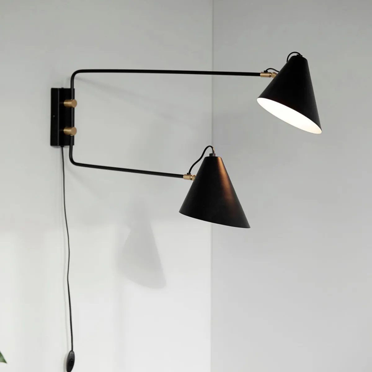 Lamper legger til karakter og stil til enhver innredning. Med den dekorative vegglampen, Club, fra House Doctor, får du et atmosfærisk lys for rommet ditt og en fin dekorasjon for veggene dine. Lampen har et industrielt og skulpturelt utseende, noe som gjør det til en fantastisk designerklæring i ethvert hjem. Kombinasjonen av svart jern og gylden messing gir designen en varm vri. Lampen har flere funksjoner. Lampehodet kan vippes opp og ned og fra side til side. Og armen kan flyttes fra side til side. Disse funksjonene gir deg muligheten til å justere lyset slik du vil.
