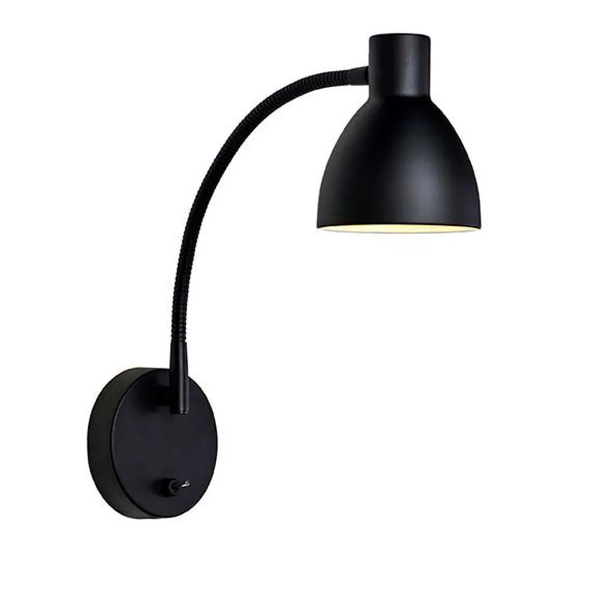 Dennis er en nydelig vegglampe med fleksibel arm og bryter montert på veggplaten.