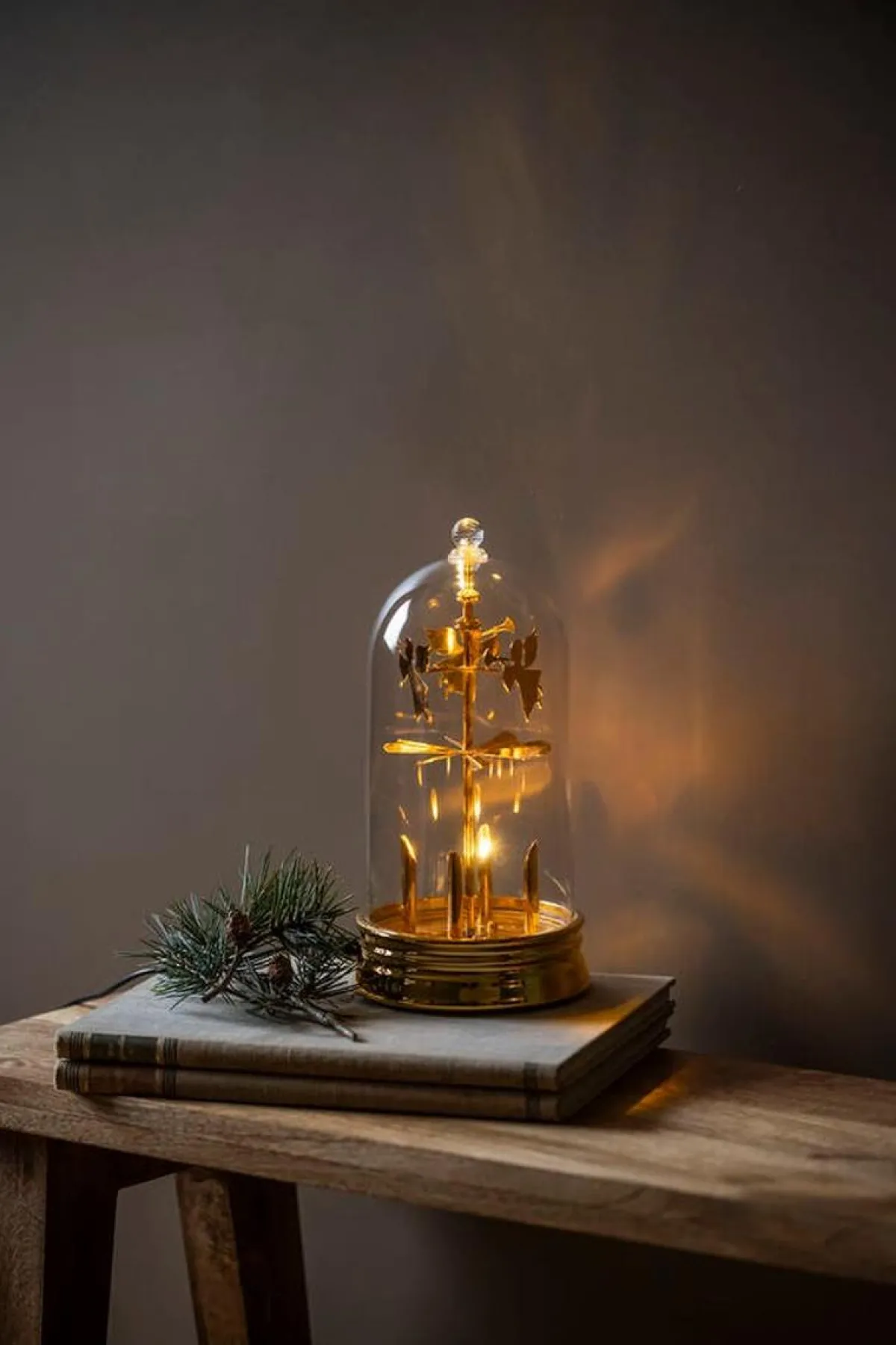 Skap en herlig atmosfære med et klassisk spinnende englespill i en moderne vri – nå med varmt hvitt LED-lys. En vakker borddekorasjon som passer perfekt i vinduer, på hyller eller som gave. Det tidløse designet og de glitrende englene vekker både nostalgi og glede. Perfekt som julepynt, gave eller stemningsforsterker i hjemmet ditt.