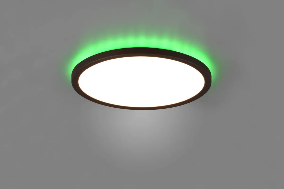 Aureo er en slank taklampe som leveres med fjernkontroll. Med fjernkontrollen kan lampen dimmes, slås av/på, endre fargetemperatur og farget lys, samt lampen kan settes i nattmodus.