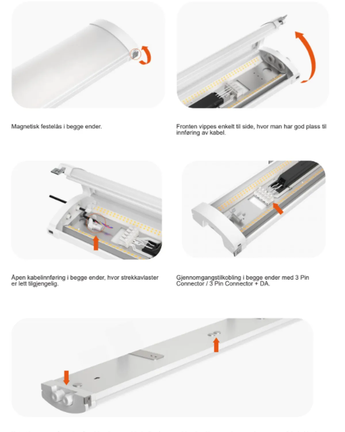 Mega Batten er en utenpåliggende armaturserie som er meget lyssterk og energieffektiv, hvor man oppnår over 140lm/W.