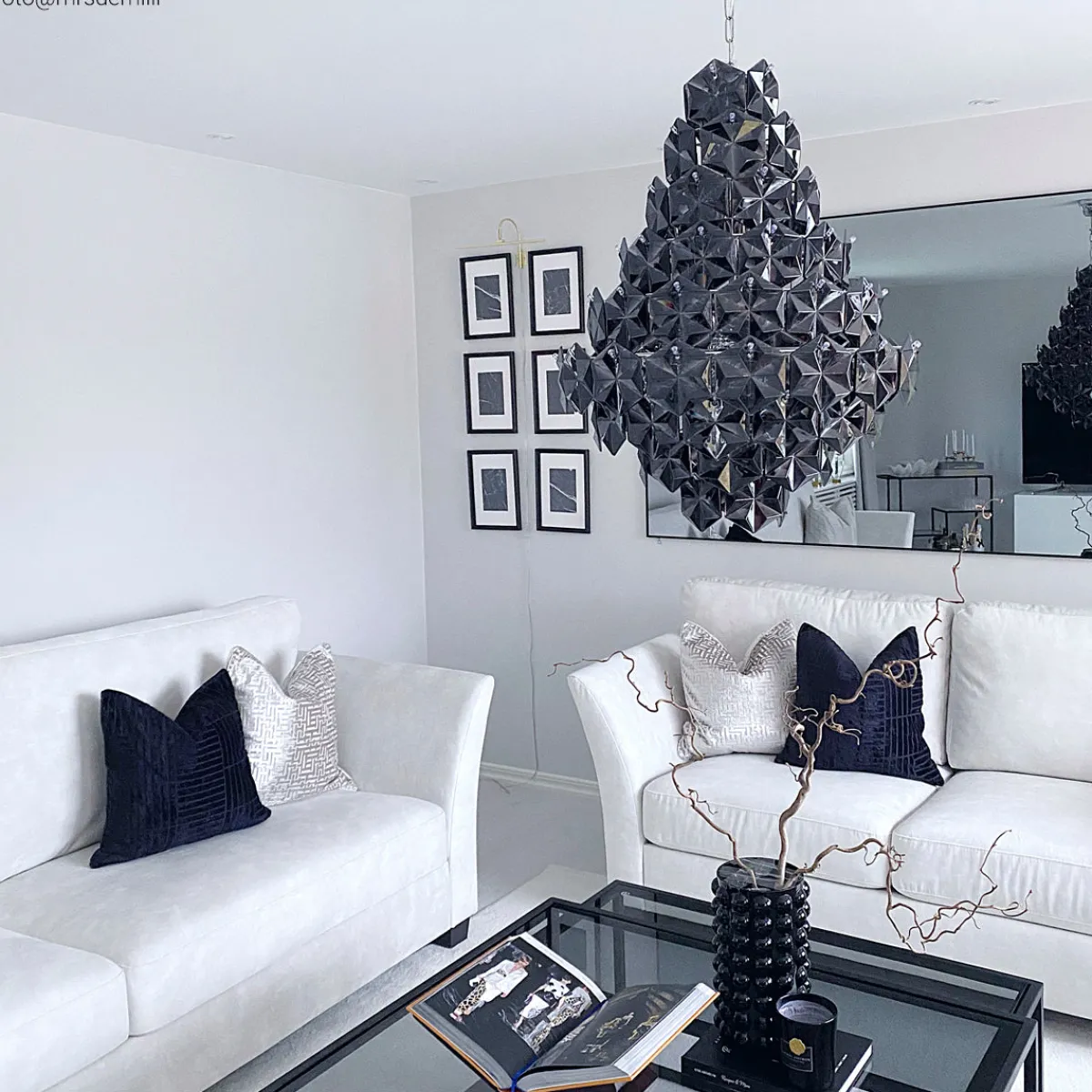 Monarque grande er en helt fantastisk taklampe i klar akryl med detaljer i sort kromfarge. En stilig lampe som setter preg der den plasseres.