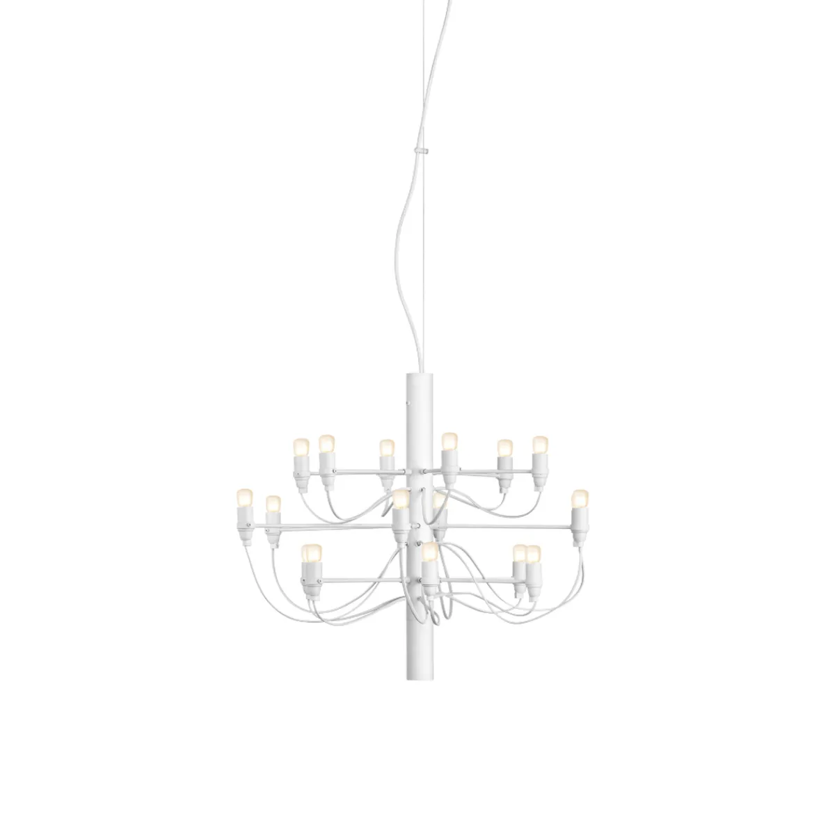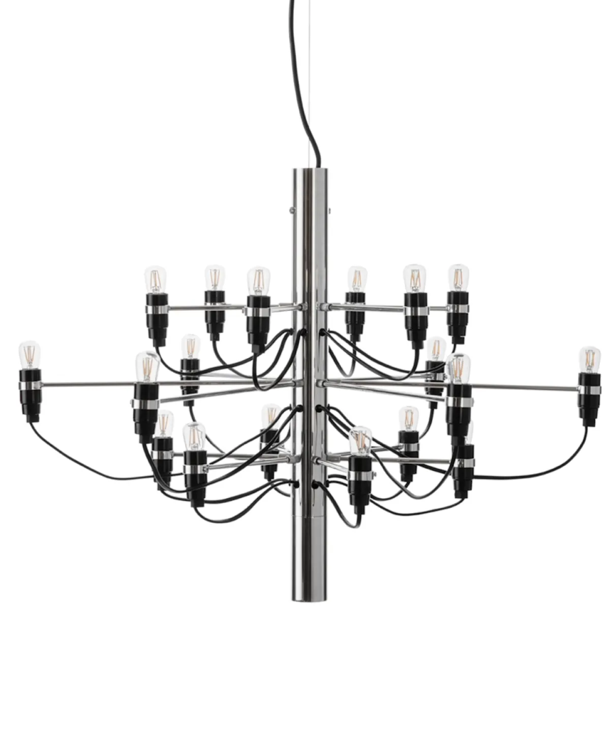 Lysekronen 2097 fra FLOS er en tidløs og klassisk lampe som hever ethvert rom. Den er tilgjengelig i sølv, messing, hvit og matt sort og i fire størrelser. Lysekronen 2097 ble designet av Gino Sarfatti i 1958 og har blitt ett lampeikon. Dette er en tidløs designklassiker og lysekronen gir mye lys til rommet. Flott å bruke over spisebord, over salongbordet, på soverom og i trappeoppgang.