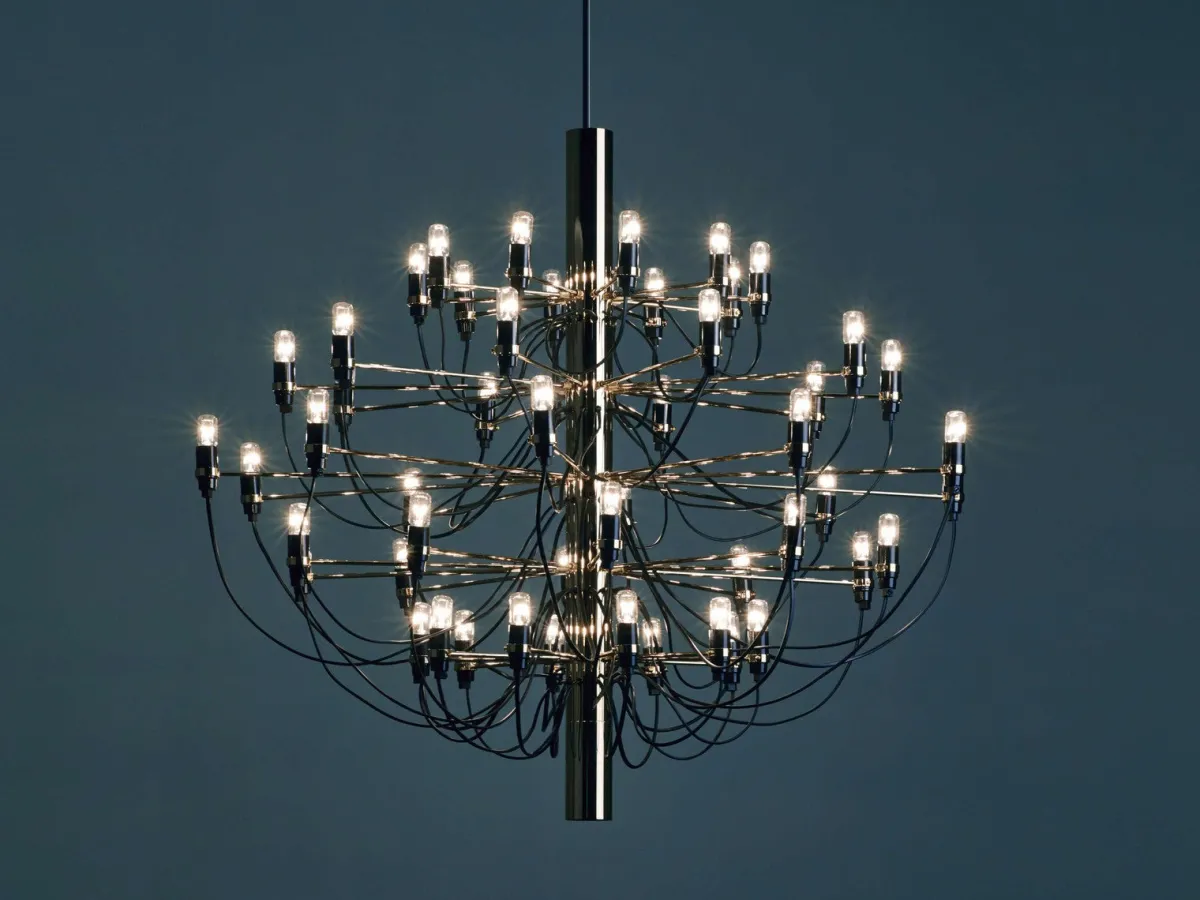 Lysekronen 2097 fra FLOS er en tidløs og klassisk lampe som hever ethvert rom. Den er tilgjengelig i sølv, messing, hvit og matt sort og i fire størrelser. Lysekronen 2097 ble designet av Gino Sarfatti i 1958 og har blitt ett lampeikon. Dette er en tidløs designklassiker og lysekronen gir mye lys til rommet. Flott å bruke over spisebord, over salongbordet, på soverom og i trappeoppgang.