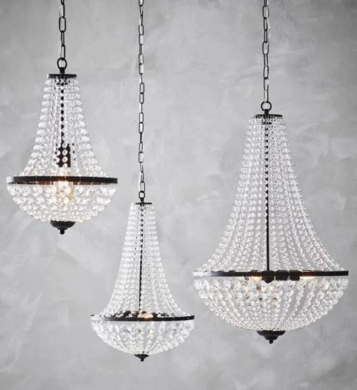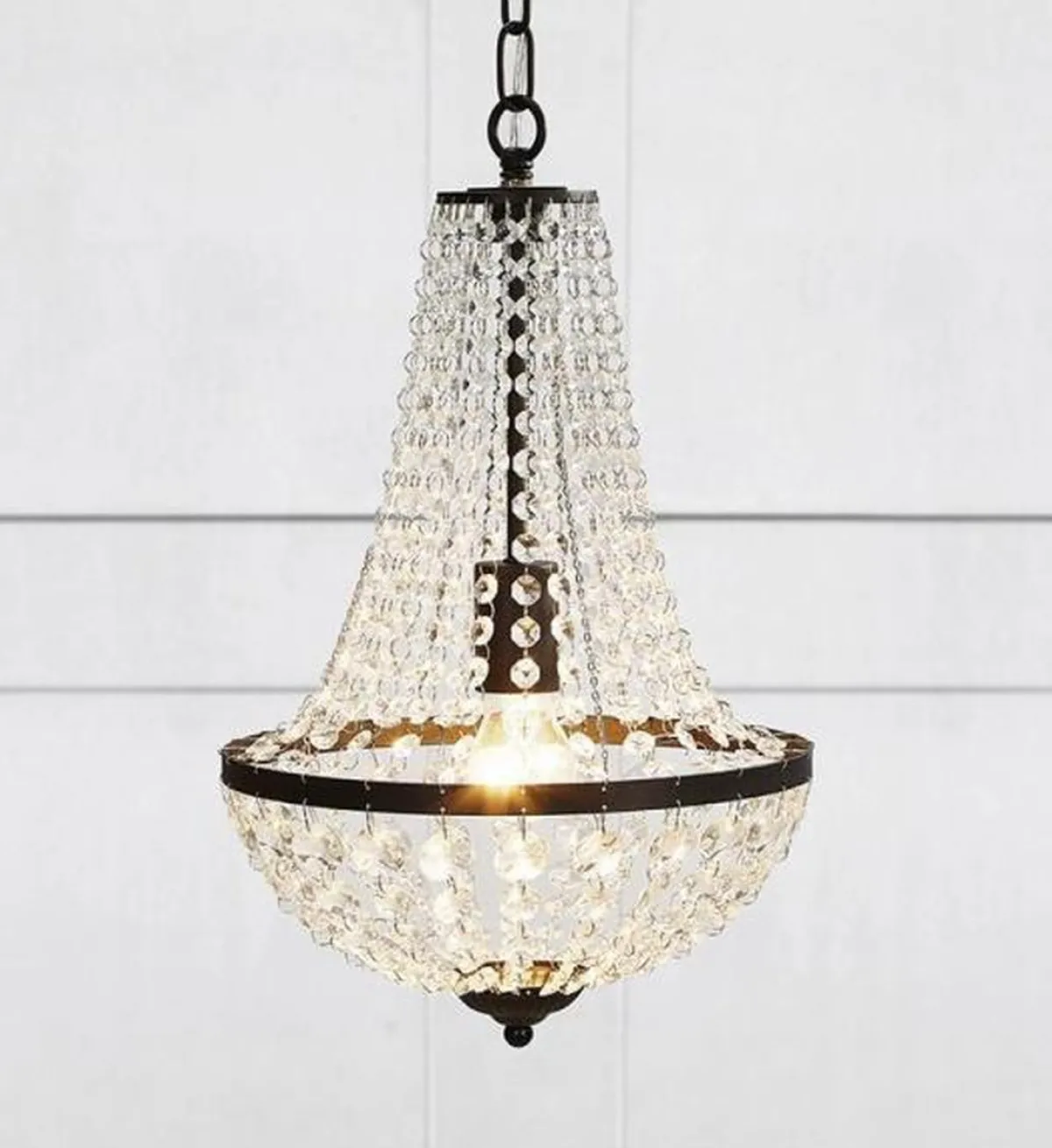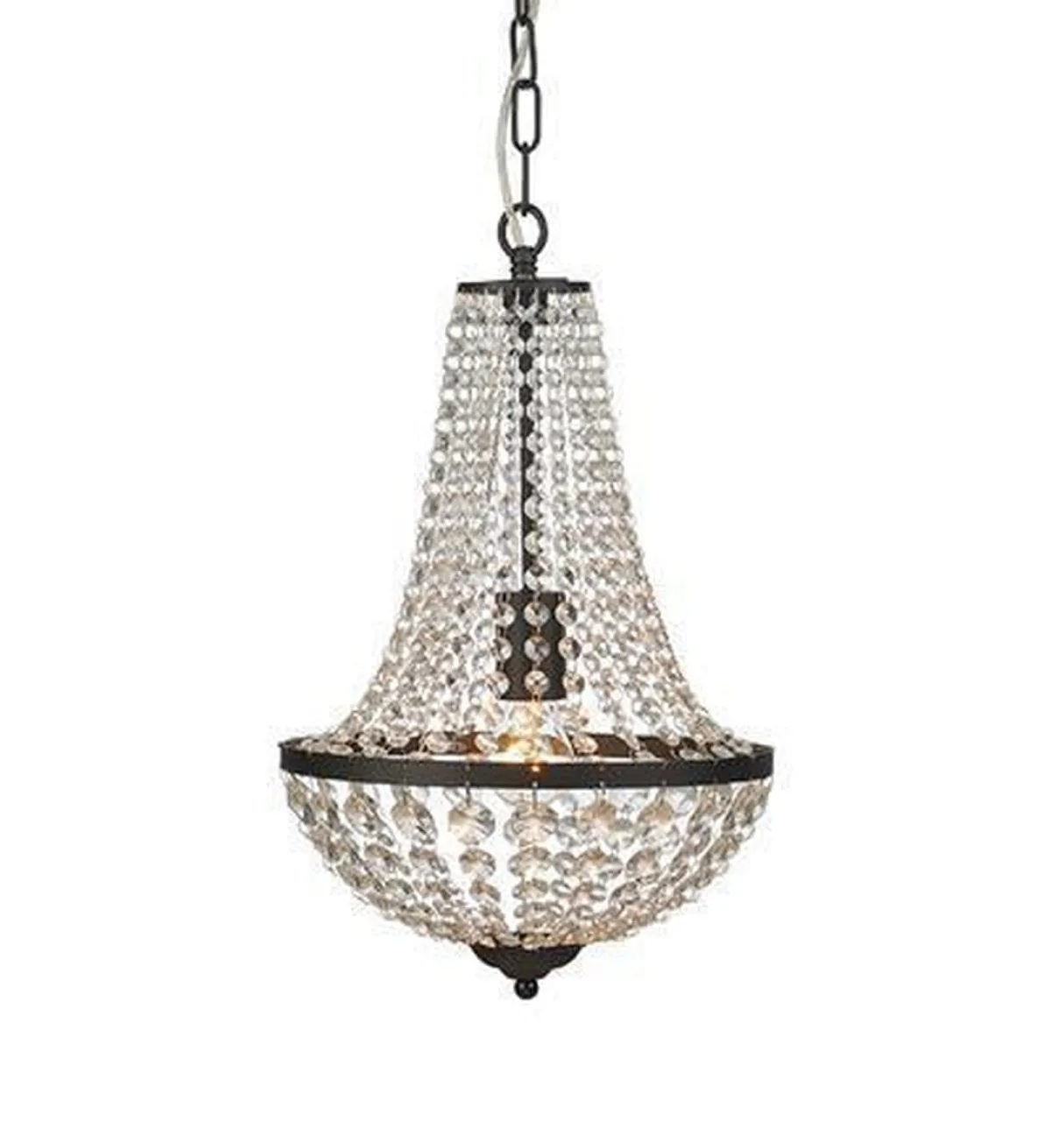Gränsö lysekrone fra Markslöjd. Mattsort metall og klare prismer.