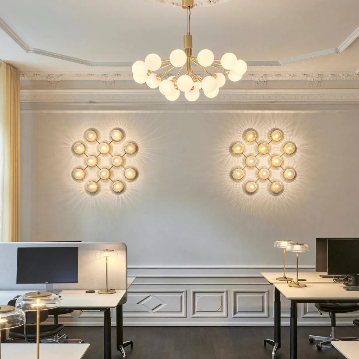 Inspirert av blomster har Sofie Refer designet Apiales-kolleksjonen. Armene på Apiales lysekrone minner om blomsterstilker som sprer et diffust og vakkert lys.