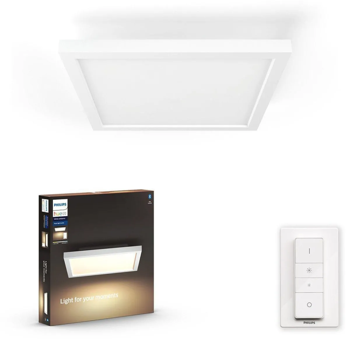 Det firkantede Philips Hue White ambiance Aurelle panellyset lar deg nyte varmt til kjølig hvitt lys med innebygde lysinnstillinger. Få øyeblikkelig kontroll med den medfølgende Hue-dimmeren switch eller via Hue Bluetooth-appen. Legg til en Philips Hue Bridge for å låse opp alle smartbelysningsfunksjonene.