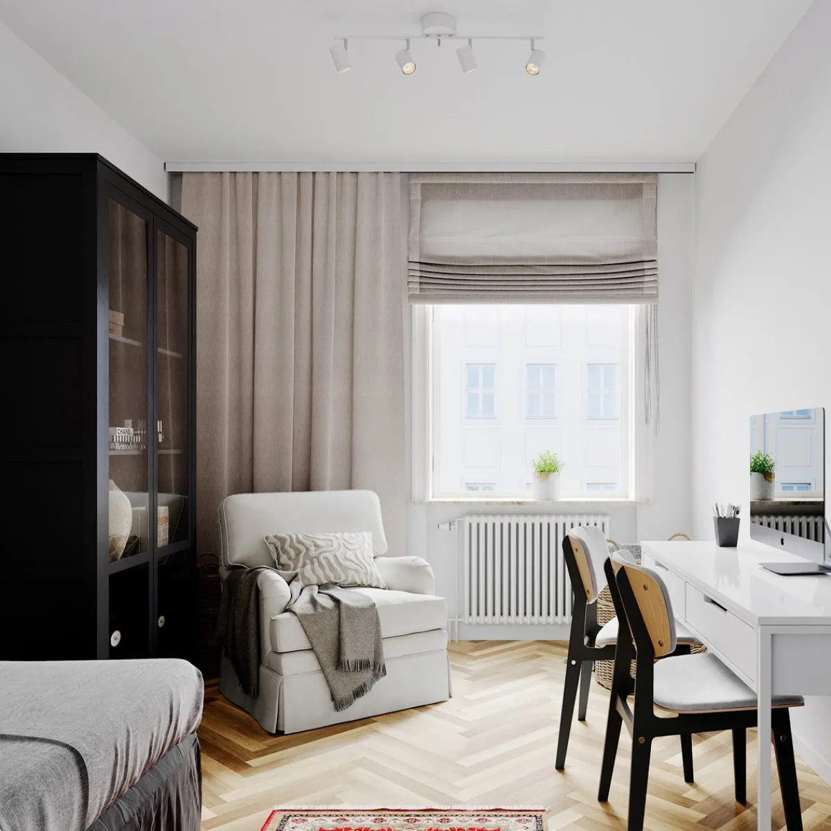 Praktisk og tidløs spotskinne med 4 spotter i matt hvit. Spottene er justerbare.