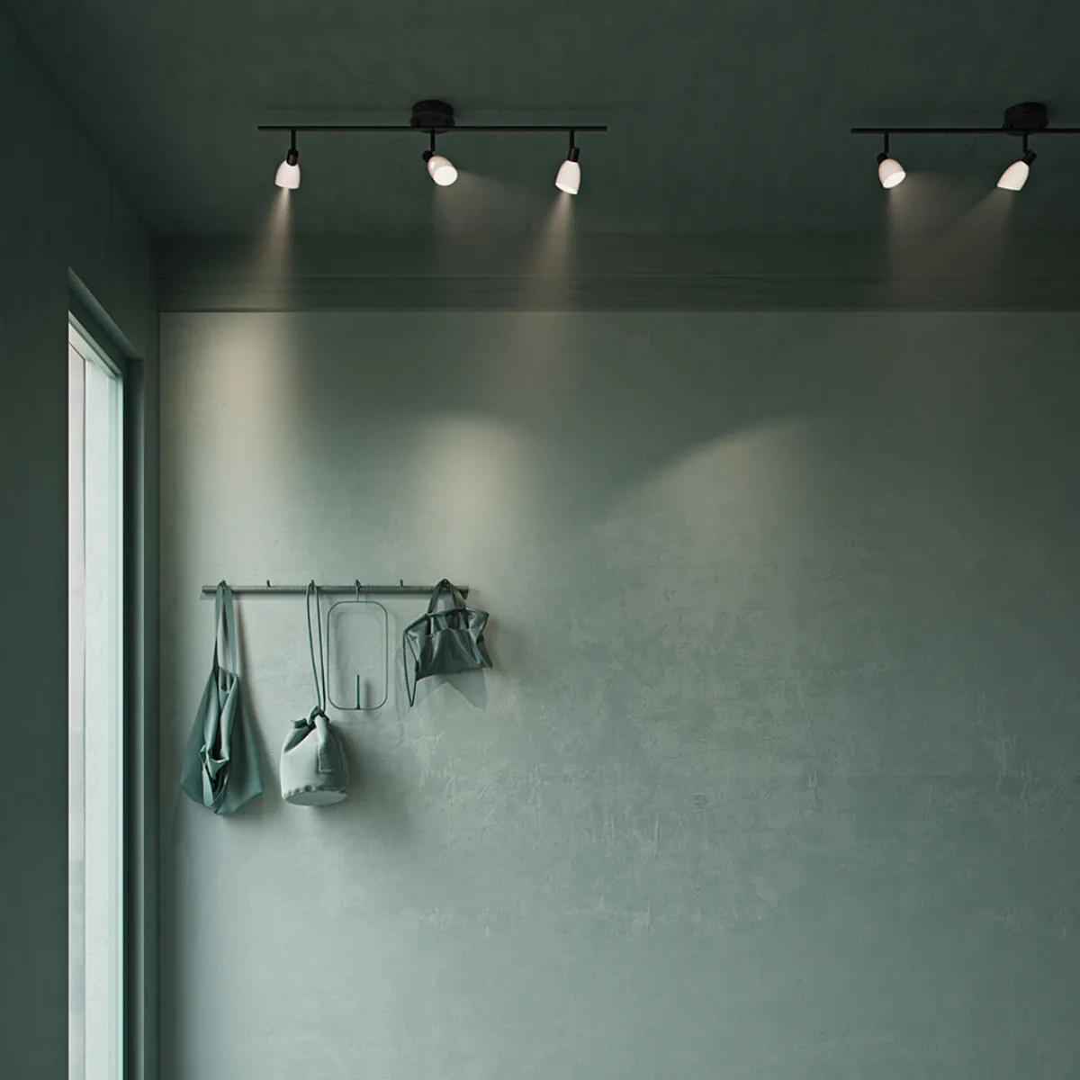 Modellen finnes som taklampe, skinne, vegglampe og gulvlampe.