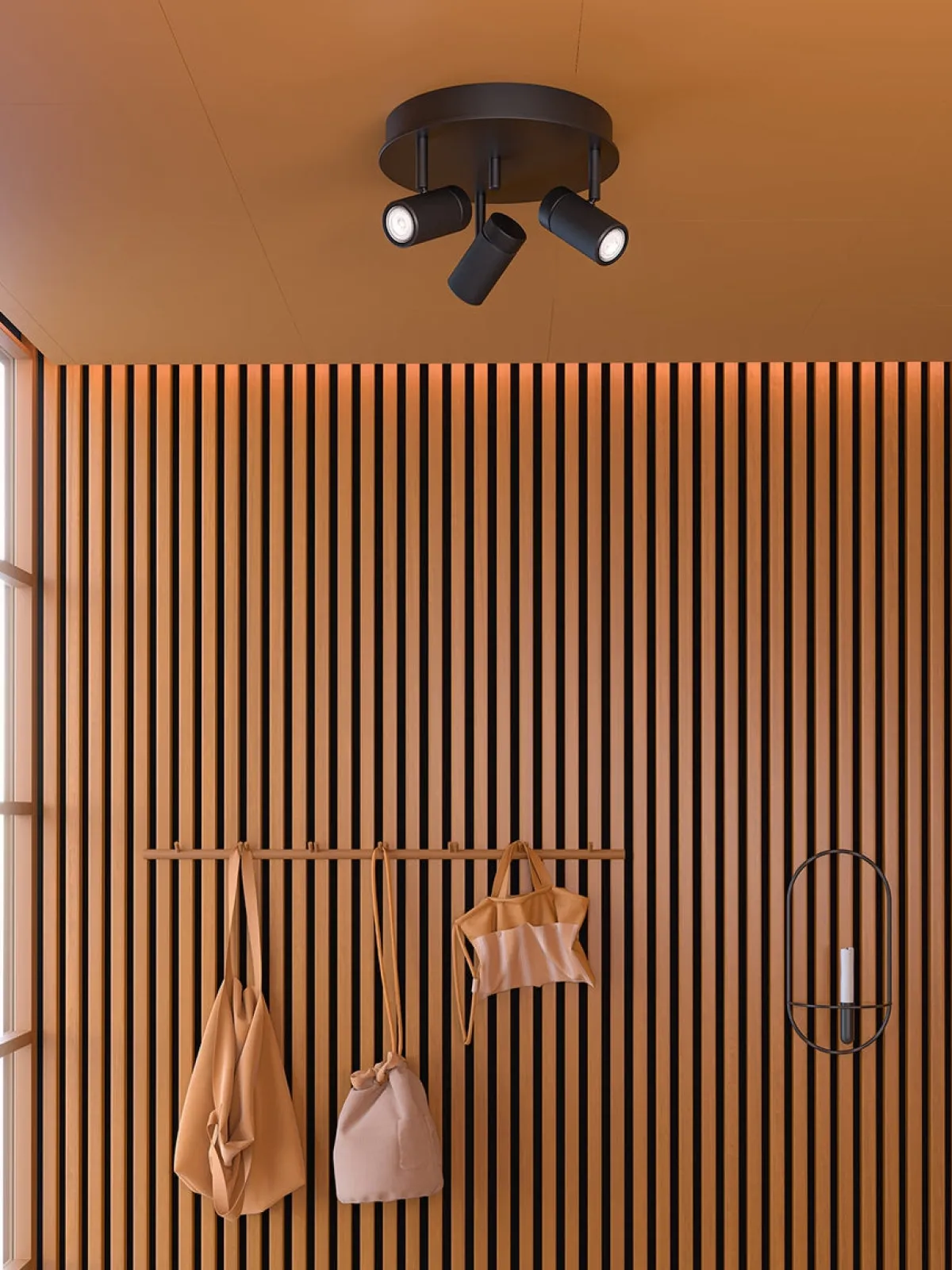 Kolleksjonen er tilgjengelig i en rekke modeller og design. Alle med matt svart metall og svartbeiset tre på toppen. Tre forskjellige spotlights. En gulvmodell. To pendel og en vegglampe. Design Mikael Berlin