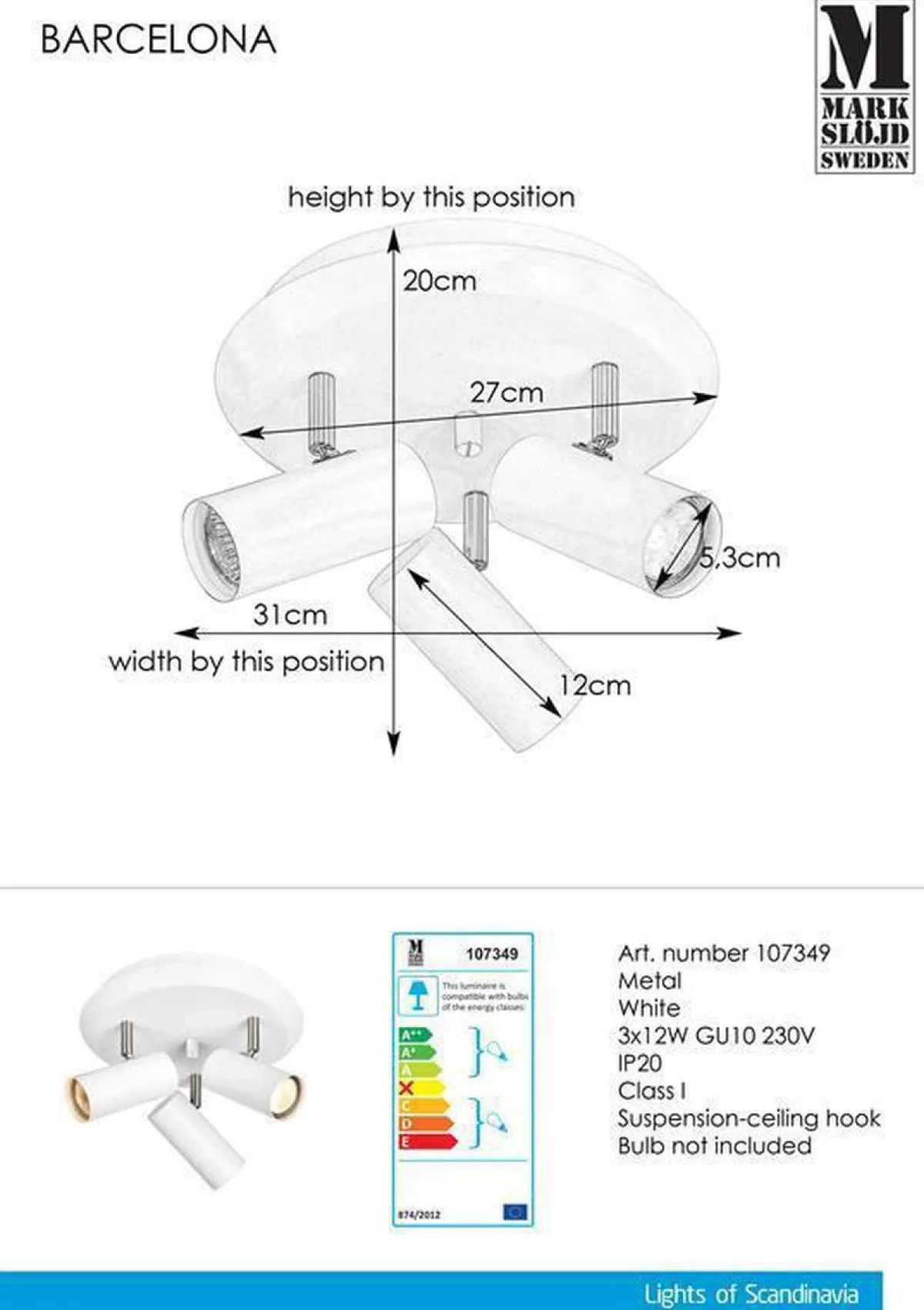 Barcelona taklampe fra Markslöjd med justerbare lampehoder.