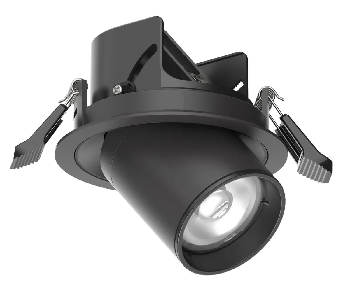 ModFun X er en meget fleksibel downlightserie, hvor lyskilden er både tilt- og roterbar. Når lyskilden er trukket helt opp, fungerer den som en standard downlight, hvor den retter alt lys ned.
