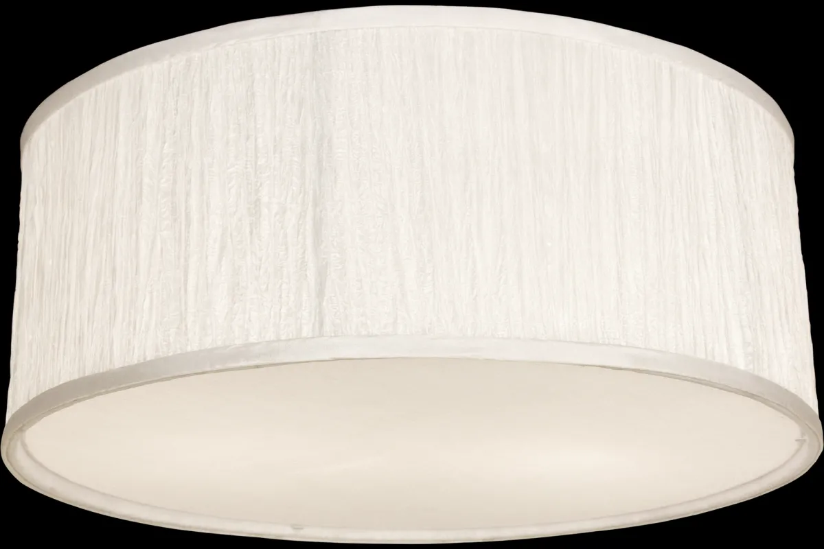 Bendir plafond med hvit rynket tekstilskjerm og hvit tekstilplate i bunn. Max wattstyrke er 2x40W. Lampen monteres i taket på krok og kobles til strøm med koblingsklemme. Dekorativ lampe i taket som egner seg like godt på soverommet som i gangen. Tekstilskjermen gjør at det bilr et behagelig lys som spres godt i rommet. Vi anbefaller lyskilde med hvit glass.