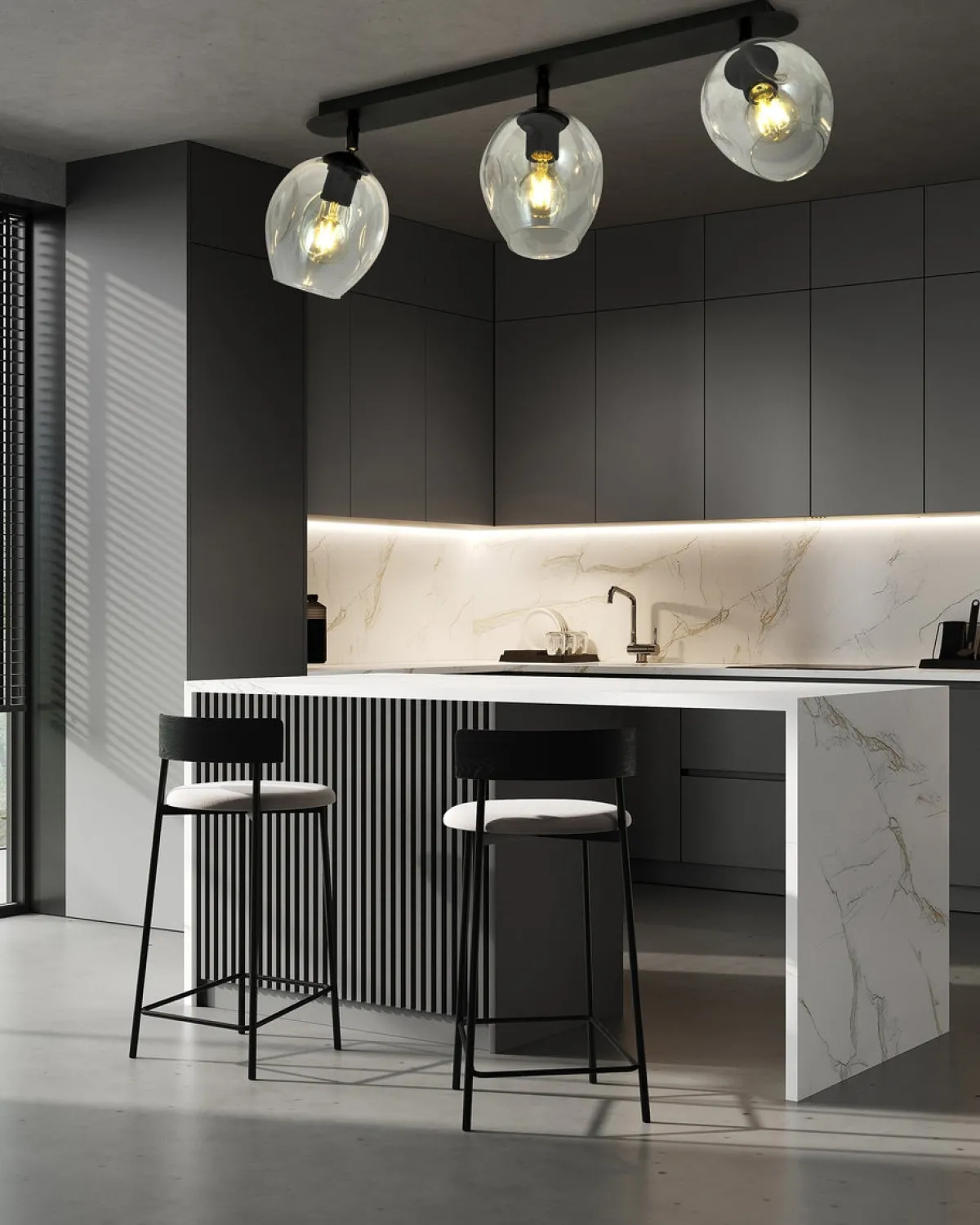 Flow er en nydelig taklampe serie som finnes med klart, amber eller røykfarget glass. Glasset har bølger på hver siden av kuppelen. Gir ett nydelig lysbilde.