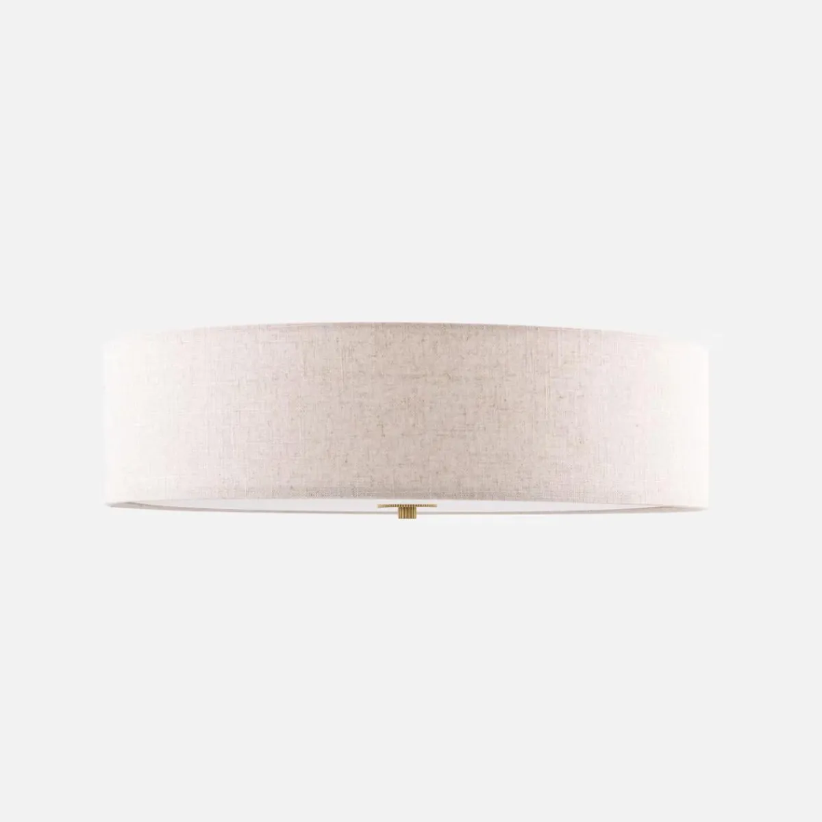Noah er håndlaget av farget lin, noe som skaper en sofistikert og dekorativ taklampe. Lampen er kombinert med en ekte messingsdetalj, og stoffet har et livlig mønster med en hvit blender laget av det samme linmaterialet i bunnen for å spre et behagelig lys.