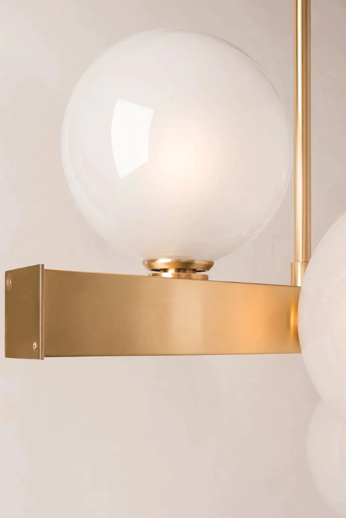 Lampen har 9 kupler i opalthvitt glass og gir godt med lys til rommet.
