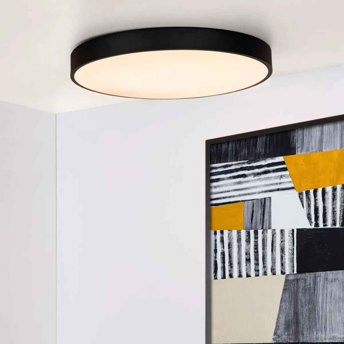 På grunn av sin runde metallramme og et matt deksel foran den integrerte LED-lyskilden, føles denne taklampen hjemme i ethvert interiør.