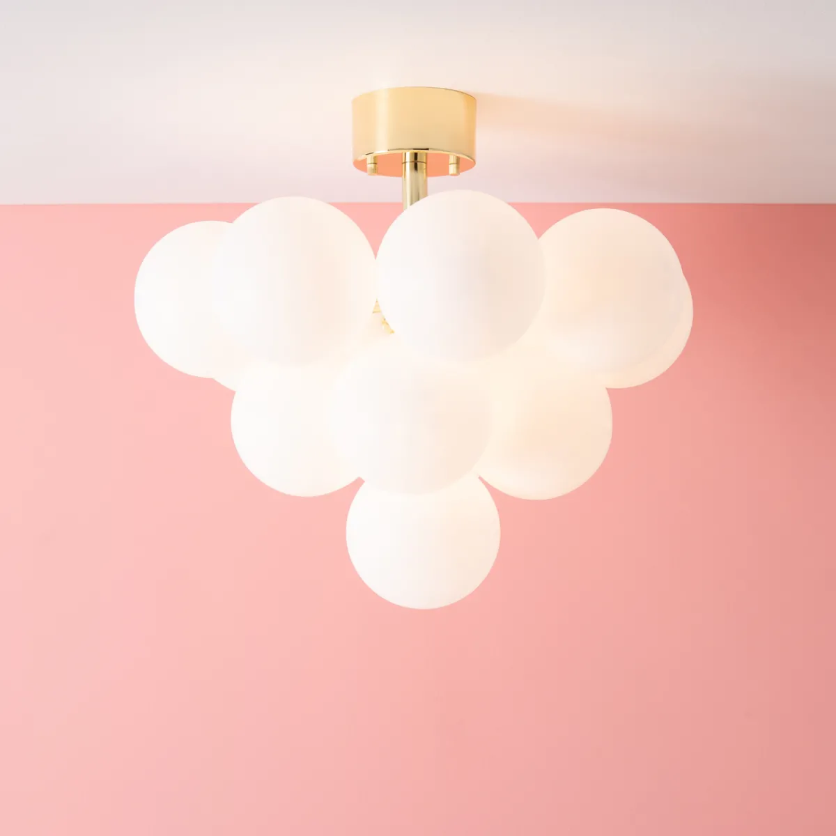 Merlot er en nydelig og dekorativ taklampe med opalhvite glasskupler. De opalhvite glasskuplene sørger for et jevnt og behagelig lys.