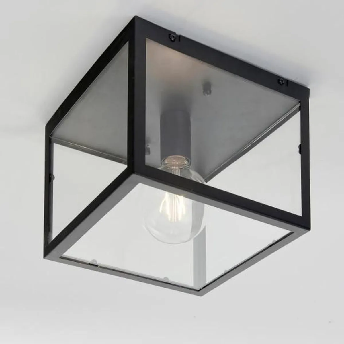 Dovre taklampe hører til resten av Dovre serien som kommer med bord, vegg og taklamper. En trendy serie med sitt enkle design. Lampen har en ramme av metall med sort fargeutførelse og har skjermer av glass.