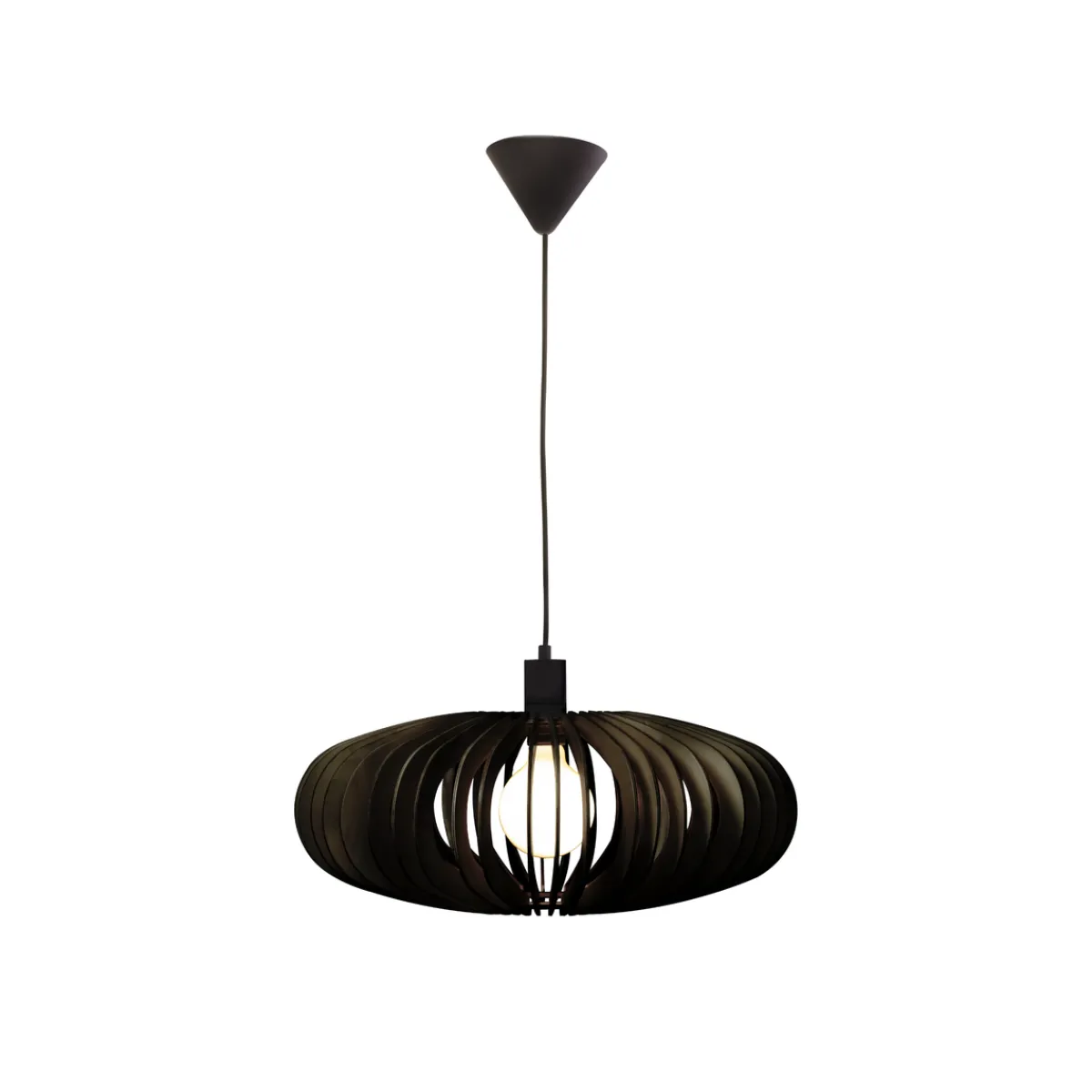 Den elegante taklampen Arcos består av plywoodlameller i myk rundet form som skaper en vakker lys- og skyggeeffekt.