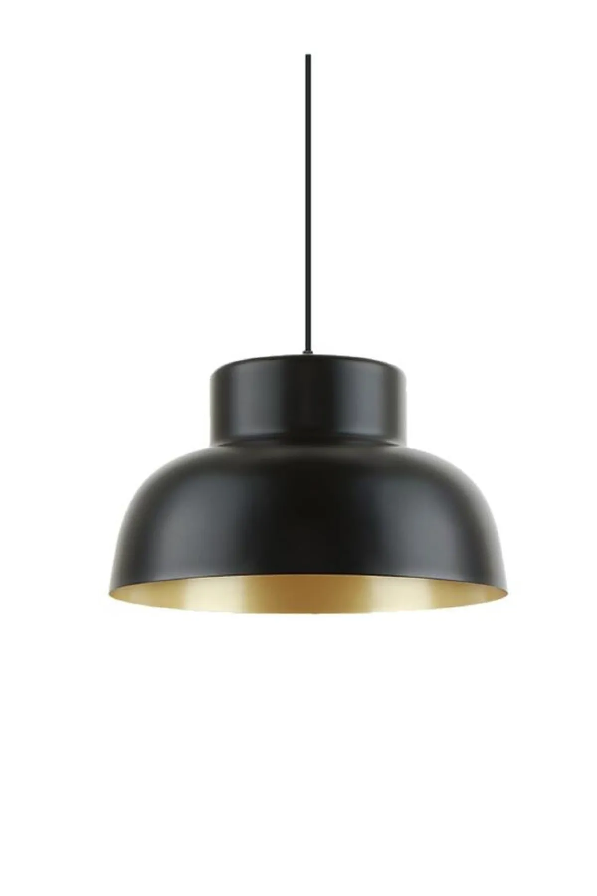 Taklampen Bessie i tidløs og klassisk design harmonerer godt med de fleste interiørstiler. Den svarte metallskjermen i mykt, avrundet form gir god nedoverrettet belysning. Skjermen er gullfarget på innsiden, noe som gir et litt varmere skjær. Bessie taklampe er perfekt for å gi godt lys over spisebordet, kjøkkenøya eller arbeidsbenken.