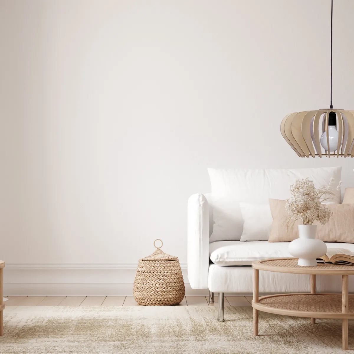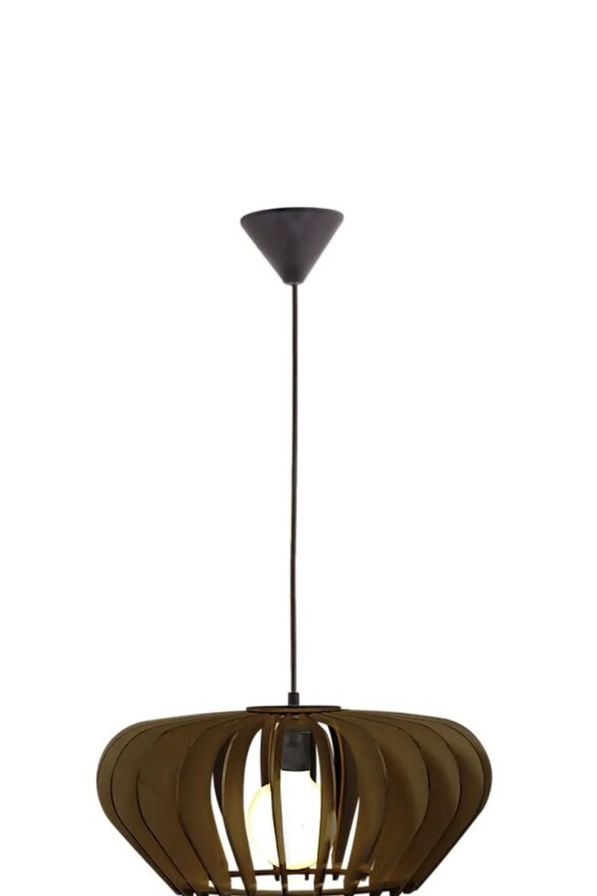 Den elegante taklampen Calyps består av plywoodlameller i myk rundet form som skaper en vakker lys- og skyggeeffekt.