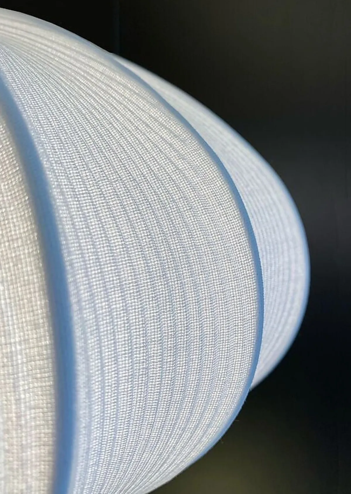 Mamsell-takpendel i hvit trikot gir en myk og fin glans. Den avrundede formen gir et hyggelig uttrykk. Fin å bruke over spisebordet eller stuebordet.
