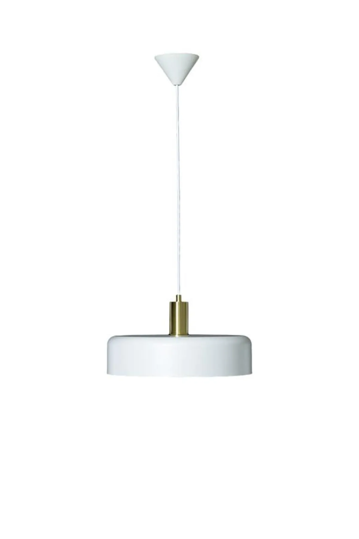 Suvi er en moderne og stilig taklampe som passer godt i de fleste hjem. I stilrent design med skjerm i hvitlakkert metall og detaljer i matt messing. Suvi gir godt nedoverrettet lys som passer perfekt for å lyse opp en bordflate eller benkeplate.